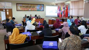 Yogyakarta – Saturday, 13 July 2019, SEAQiM celebrated its 10 years anniversary. Under the theme, DECIMAL – Decade of Inspiring Mathematics Learning, the Centre began its series of events by having potong tumpeng. The celebration was attended by the Director of SEAQiM, Dr. Sumardyono, accompanied by the Head of PPPPTK Matematika Yogyakarta, Dr. Daswatia Astuty, and witnessed by all SEAQiM’s management and staff.