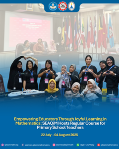 SEAMEO QITEP in Mathematics (SEAQiM) successfully conducted first Regular Course in 2025, entitled Regular Course on Joyful Learning in Mathematics Education for Primary School Teachers, from 22 July to 4 August 2025.