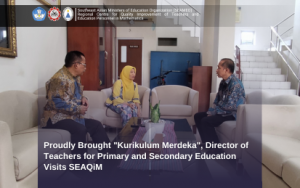 Yogyakarta – February 27, 2024, SEAQiM is honoured to welcome the visit of Dr. Rachmadi Widdiharto, Director of Teachers for Primary and Secondary Education, Directorate General of Teachers and Education Personnel, Ministry of Education, Culture, Research, and Technology (MoECRT) of Indonesia, as well as a governing board member of SEAQiM. This visit was warmly welcomed by Ms Puji Iryanti, Deputy Director for Administration of SEAQiM. Along with his secretary, Dr Rachmadi socialized the “Kurikulum Merdeka”, which will be implemented nationally and in stage to 2026/2027.