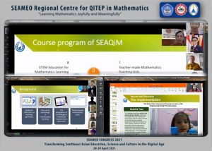 Yogyakarta – Wednesday, 28 April 2021, Dr Sumardyono (SEAQiM Director) shared the Centre’s experience running its programmes during the Covid-19 pandemic. He also talked about how SEAQiM adjusted and modified its activities to cater for the needs of mathematics teachers in the region in this current situation. This presentation was delivered during the SEAMEO Congress 2021 with the theme Transforming Southeast Asian Education, Science and Culture in the Digital Age, conducted virtually between 28 and 29 April 2021.