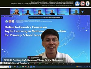 Friday, 9 June 2023 – SEAQiM successfully finished the In-country Course on Joyful Learning in Mathematics Education for Primary School Teachers in collaboration with the Department of Education–Region III, Tarlac City, Republic of the Philippines. This one-week course was conducted online through Zoom from 5 to 9 June 2023 as a form of mathematics training initiative from the Principals of Tarlac City School Division, Dr Jessie B. Aquino. The course offers participants comprehensive strategies and resources for joyful, exciting, and meaningful learning in their mathematics classroom.