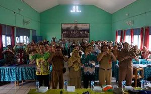 Before the course, the MGMP Tanah Laut, supported by Education Office Tanah Laut District, had invited 60 junior high school mathematics teachers to join the programme. The teachers in Tanah Laut are actually enthusiastic about the course. So the course is conducted in 2 classes. The Head of Education Office, Tanah Laut District, is opening the course.